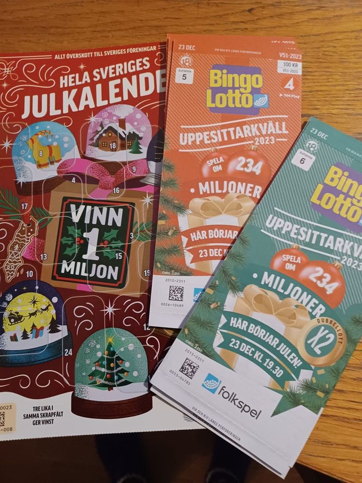 I år är den obligatoriska försäljningen för alla lag i föreningen Bingolottokalendrar och lotter till uppesittarkväll 23 december. Alla spelare kommer att få ett kuvert med 15 enkellotter och 5 dubbellotter till uppesittarkvällen och 3 kalendrar samt information om försäljningen.