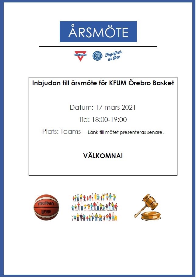 Hej! Den 17 mars är det dags för årsmöte. Hoppas att så många möjliga kan närvara, både ledare, spelare och föräldrar välkomna. Dokument inför årsmötet kommer att laddas upp under dokument, där kan man se verksamhetsberättelsen, dagordning och ekonomiska underlag. Vi kör mötet digitalt och länk presenteras några dagar innan mötet. Motioner inför mötet skickas till: nina@kfumorebrobasket.se Vi ses!